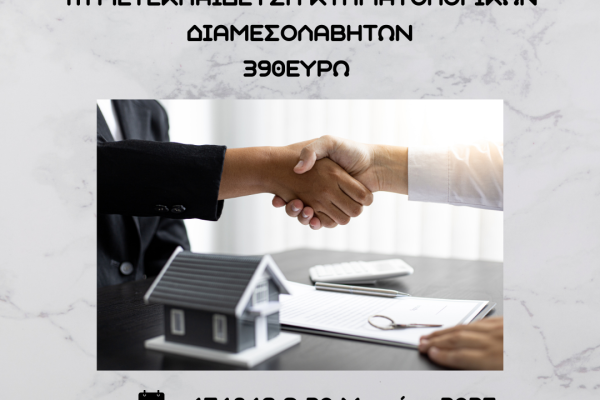 7η ΜΕΤΕΚΠΑΙΔΕΥΣΗ ΚΤΗΜΑΤΟΛΟΓΙΚΩΝ ΔΙΑΜΕΣΟΛΑΒΗΤΩΝ (online) διδασκαλία 20 ωρών (17-18-19-20 Μαρτίου 2025)