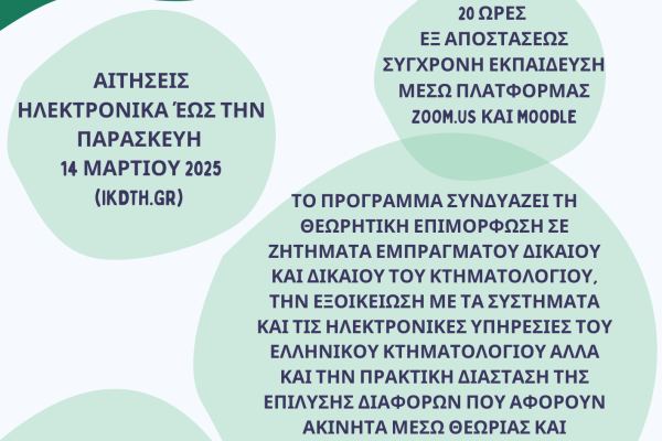 Νέο Σεμινάριο Μετεκπαίδευσης στη Διαμεσολάβηση σε Κτηματολογικές Διαφορές, εξ αποστάσεως σύγχρονη εκπαίδευση, 28-29 Μαρτίου 2025.